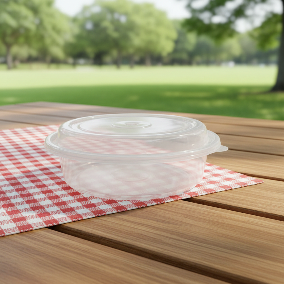 Conteneur alimentaire rond jetable en plastique PP avec couvercle, bol à soupe anti-fuite, compatible micro-ondes, pour préparation de repas et stockage