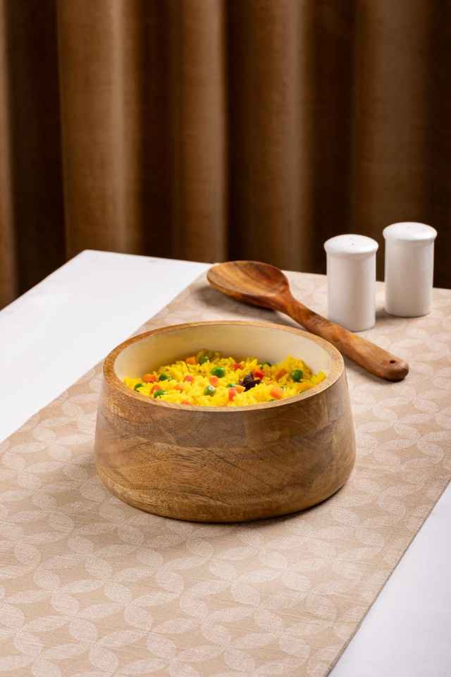 Round Eco-Friendly Acacia Wood Serving Bowl with Hand-Painted Enamel Interior Dishwasher Safe and Lightweight for Home Dining