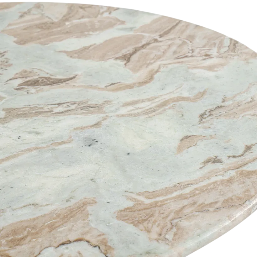Table de salle à manger ronde en marbre exotique avec base en bois de manguier massif, finition grain naturel, pour entrée, couloir, salle à manger, cuisine