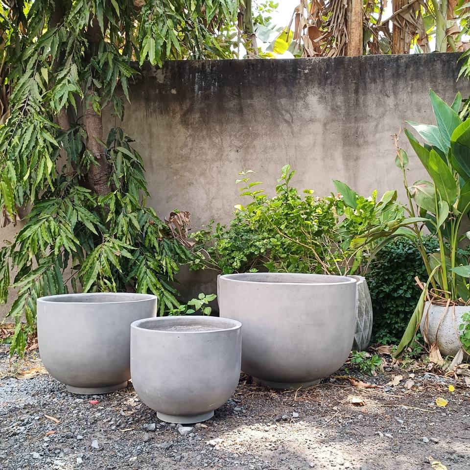 Moule rond en béton fibré pour pot de fleurs, décoration de jardin extérieur avec ensemble de 3 pots
