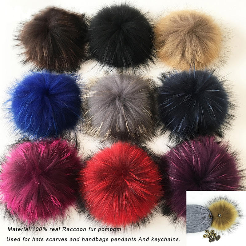 Pompons ronds en vraie fourrure de raton laveur pour sacs à main porte-clés et bonnet tricoté chapeaux pompon en fourrure véritable pompon