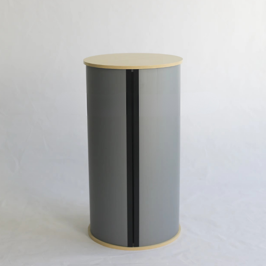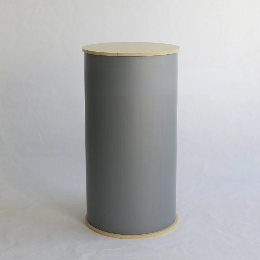 Compteur de promotion rond pliable: dessus en bois et construction de planche creuse en plastique