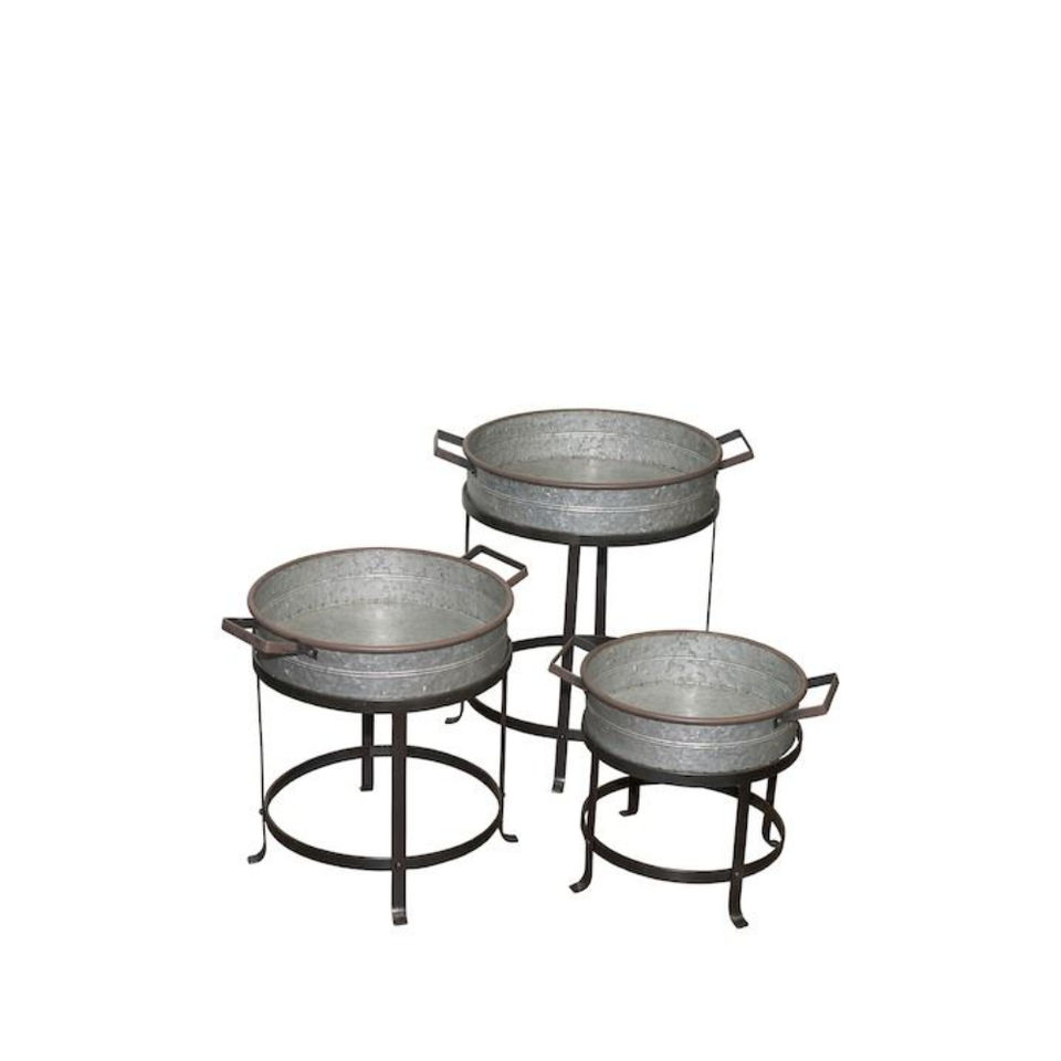 Pot de fleurs rond en métal galvanisé avec support en bois, pot décoratif moderne pour l'intérieur, la maison et le jardin, vente en gros de décoration intérieure
