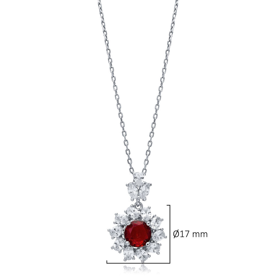 Rond Grenat CZ Pierre Fleur Conception 925 Argent Charme Collier Turc Fabriqué À La Main En Gros Bijoux