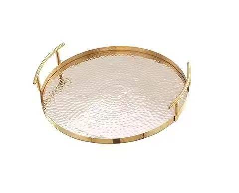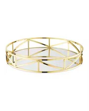 Plateau de service décoratif rond en métal doré, design géométrique, plateau de table basse, plateau de présentation de luxe, organisateur de décoration intérieure