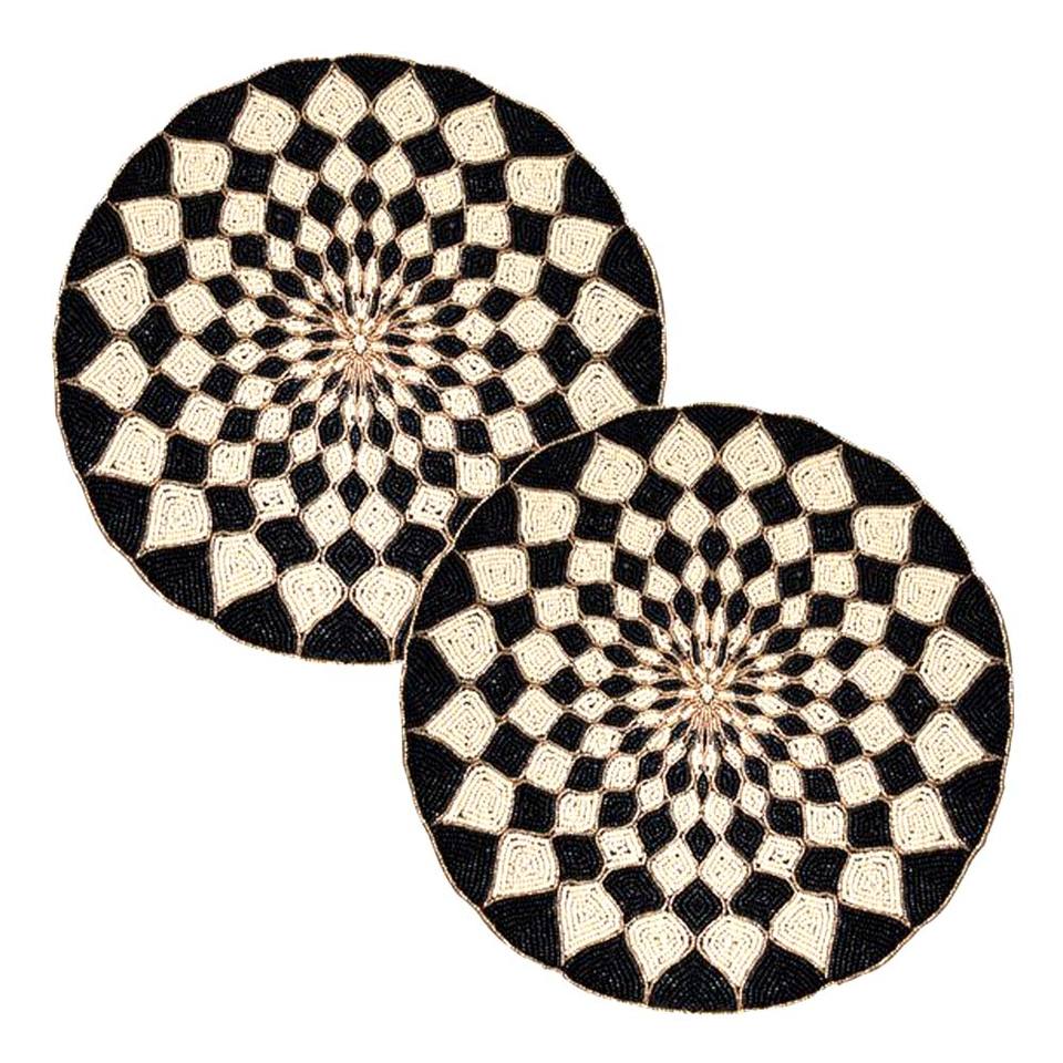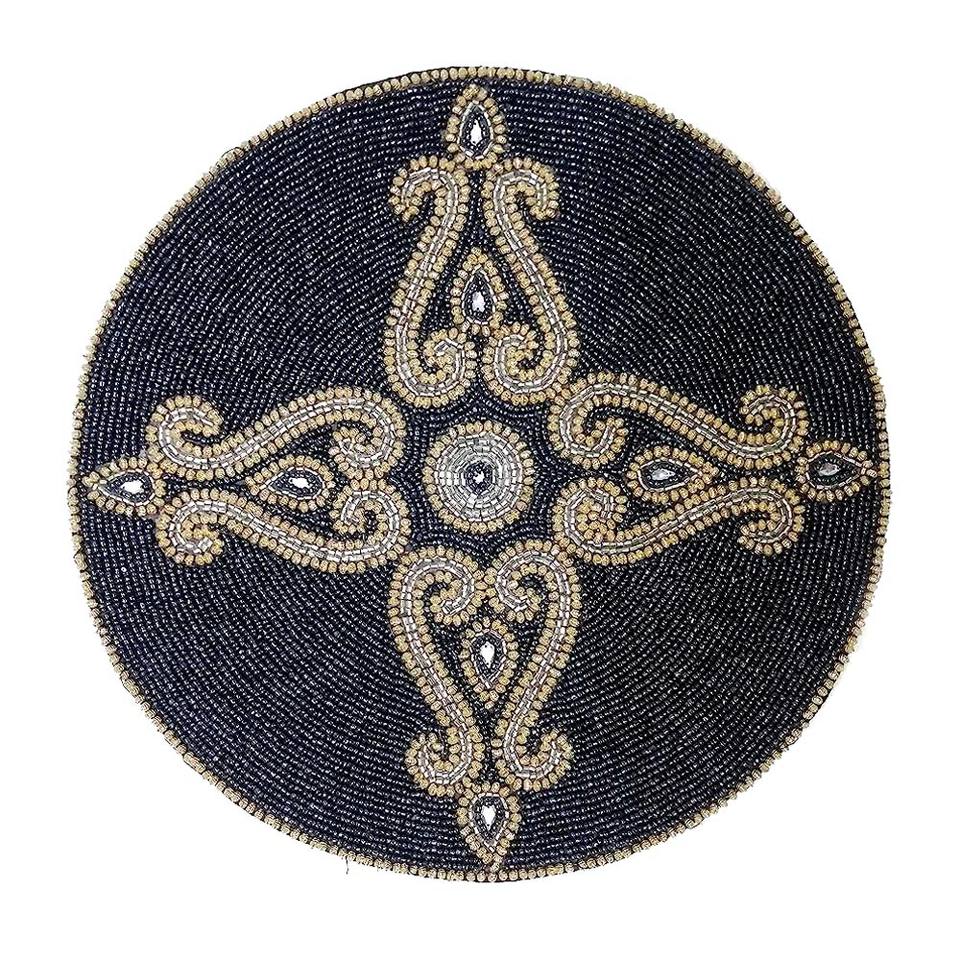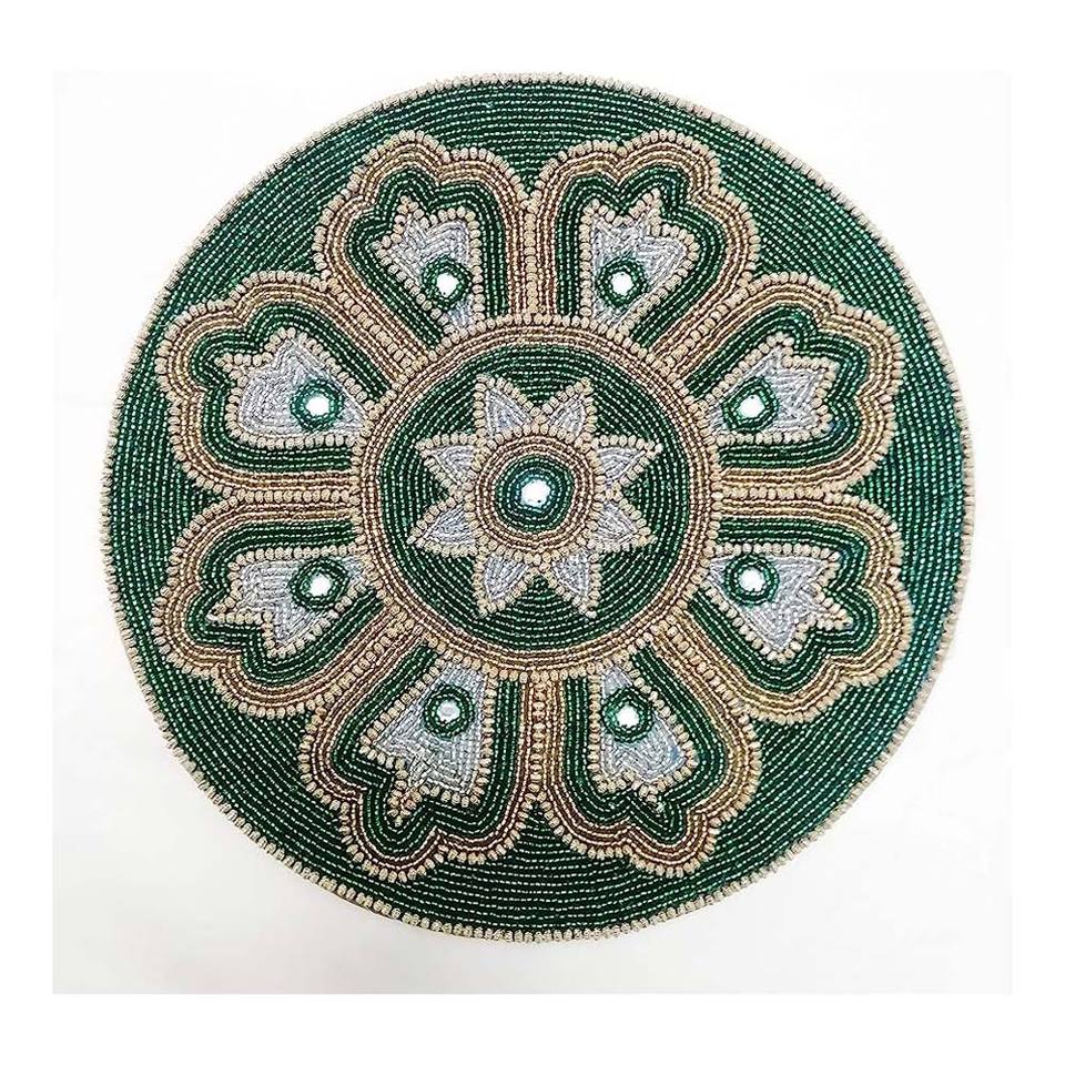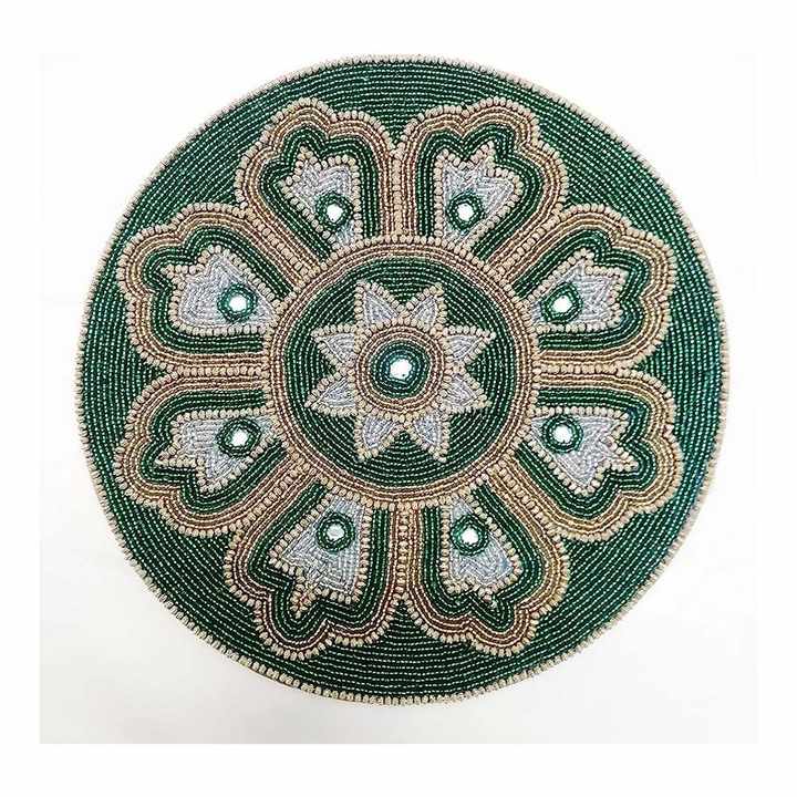 Napperons de décoration de table à manger ronds verts et dorés à la main en verre perlé pour mariage