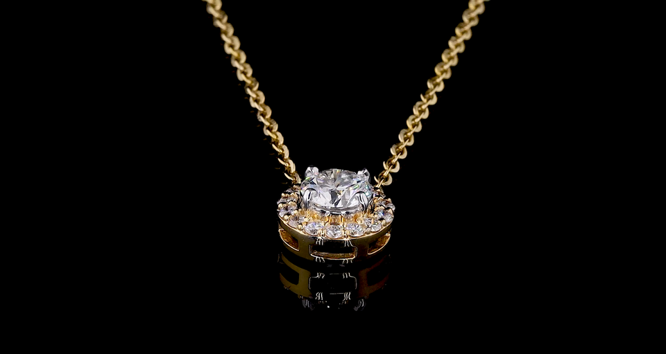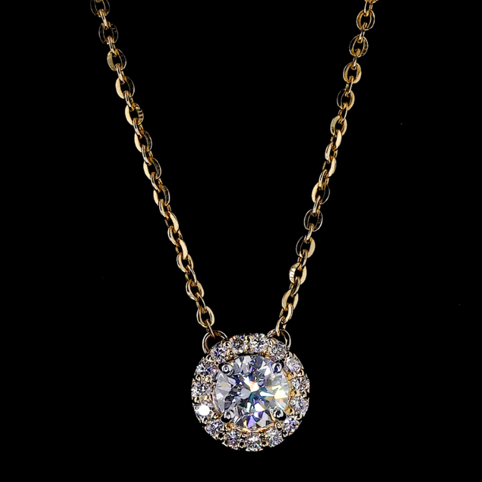 Collier pendentif rond en diamant de laboratoire cultivé en or massif 18 carats | Bijoux de Mariage Solitaire Plaqué Rhodium Certifié IGI