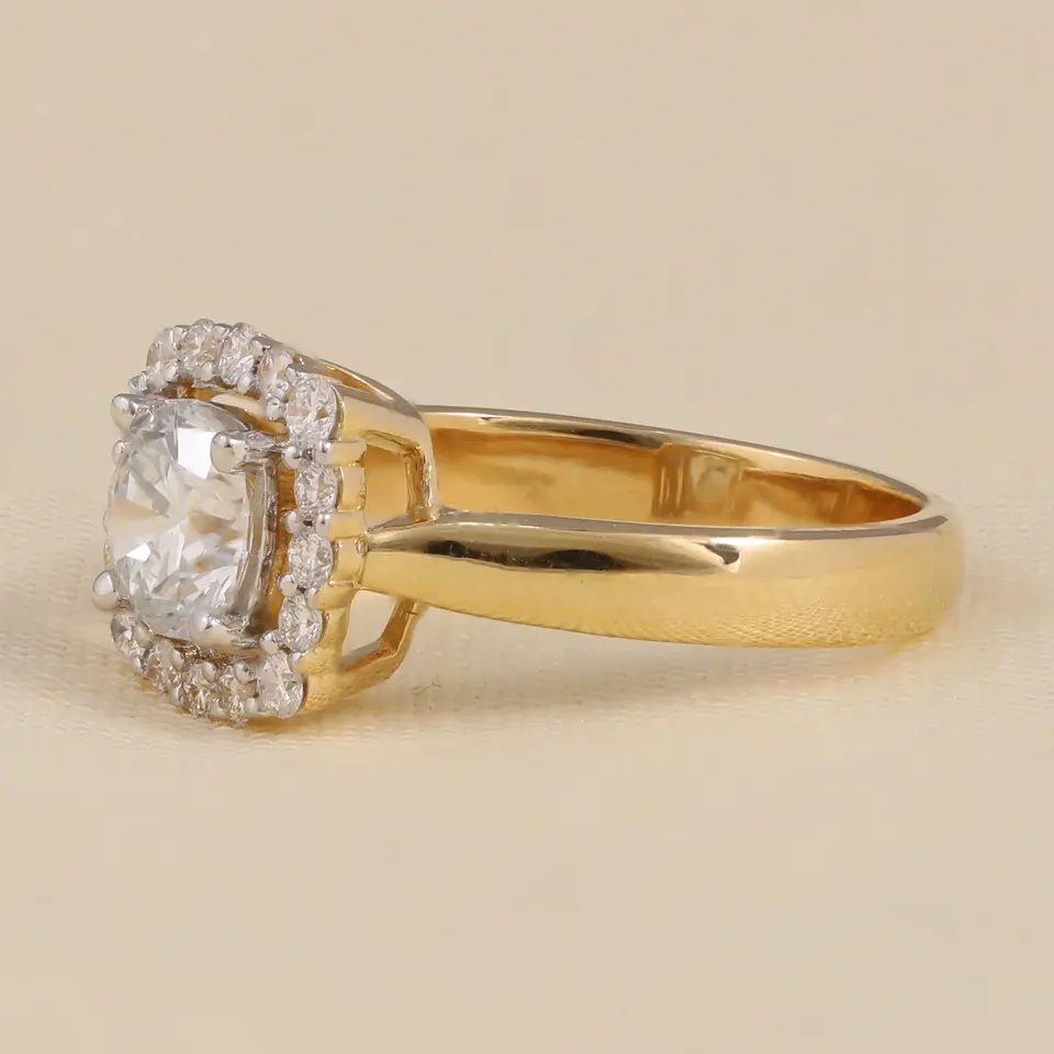 Bague de fiançailles solitaire halo ronde avec diamant créé en laboratoire - Collection de bagues en diamant élégantes
