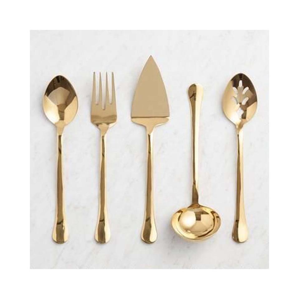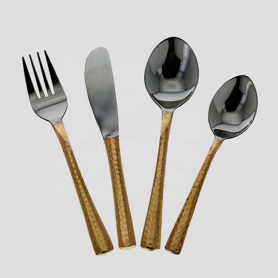 Ensemble de service poli miroir doré à manche martelé rond ensemble de service Royal Hotel mariage restaurant ensemble de service ensemble de couverts couverts