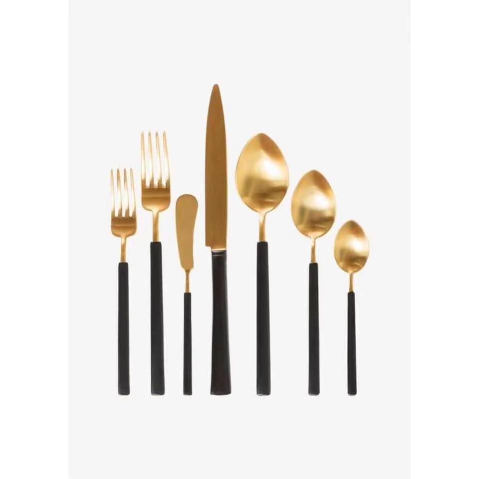 Ensemble de 5 couverts en acier inoxydable plaqués couleur or à poignée ronde allant au lave-vaisselle pour la maison, le restaurant et l'hôtel