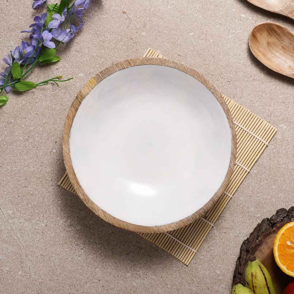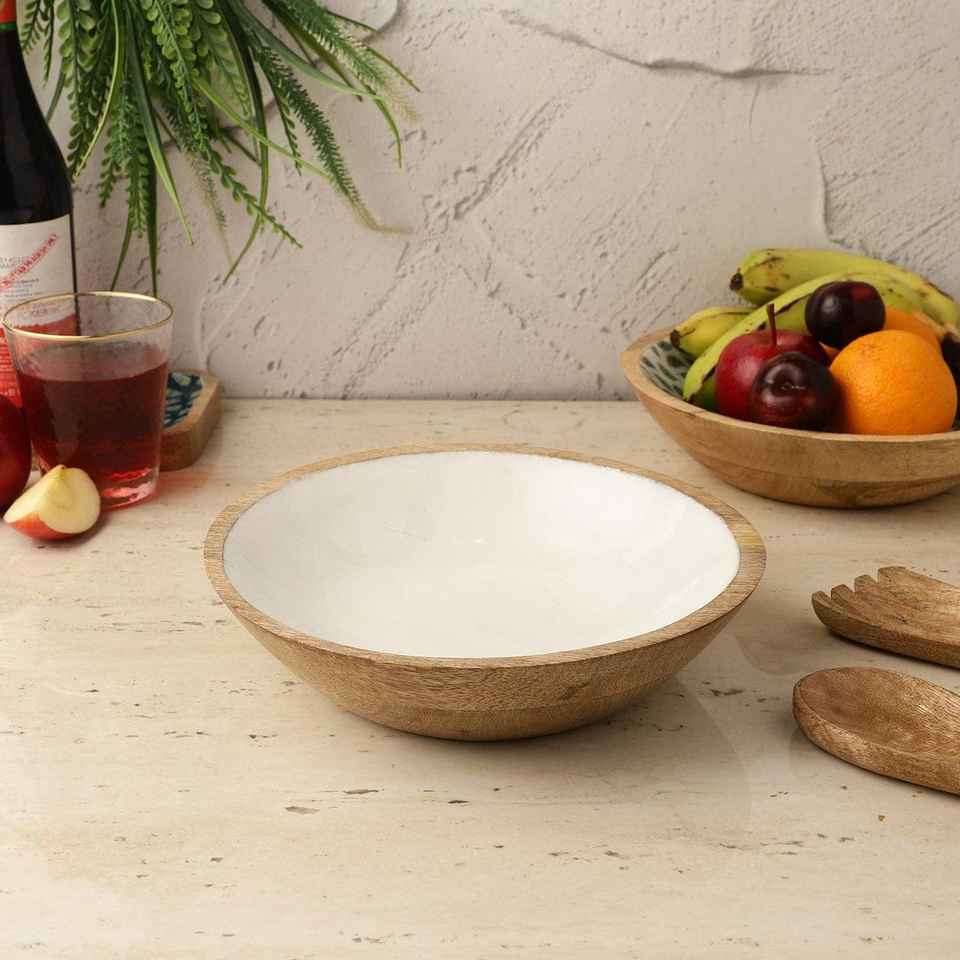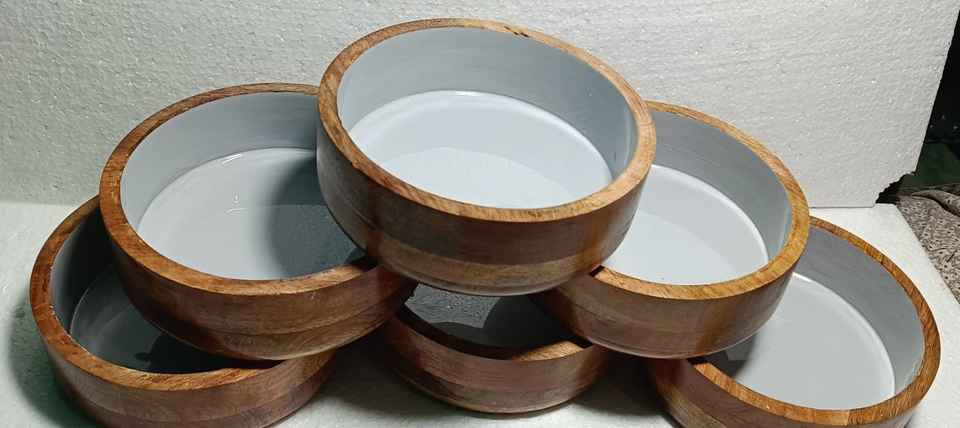 Round Handmade Eco Friendly Wooden Bowl Enamel Print Artistic Design Dishwasher Safe Kitchen Accessory for Rustic Home Dining