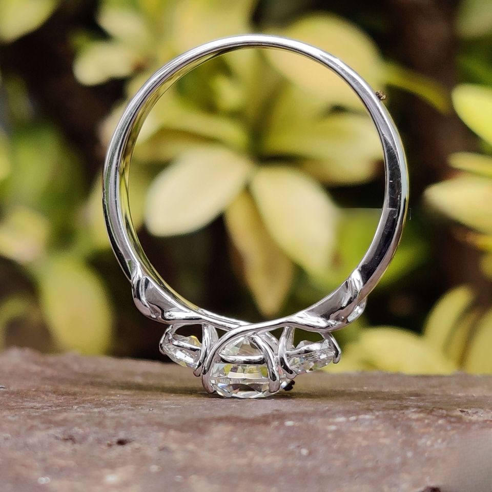 Bague à trois pierres de laboratoire incolores avec cœur rond et flèches pour mariage et fiançailles en argent sterling 925