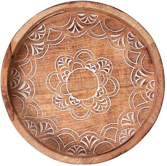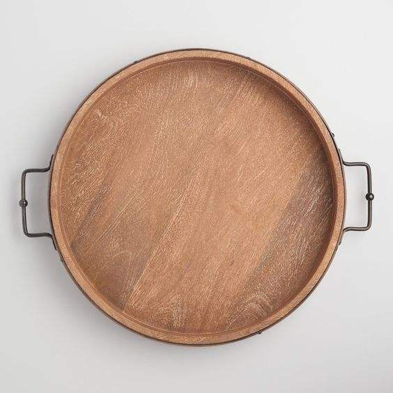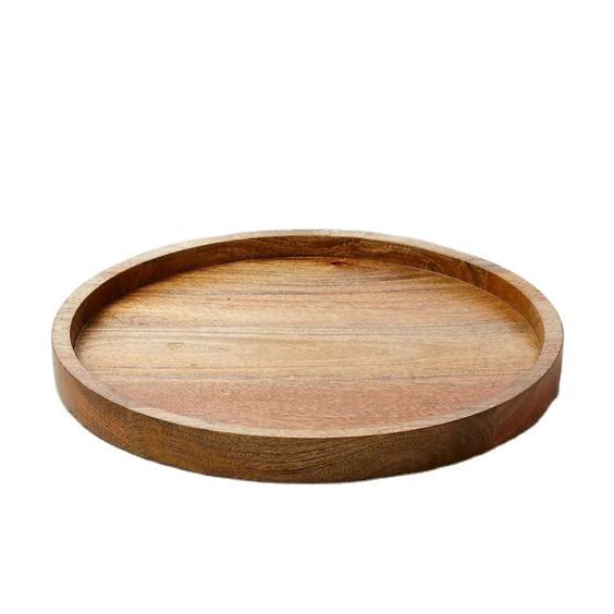 Plateaux à café de luxe de forme ronde support haut bureau hôtel intérieur maison jardin servant thé jus plateaux d'affichage 100% bois naturel