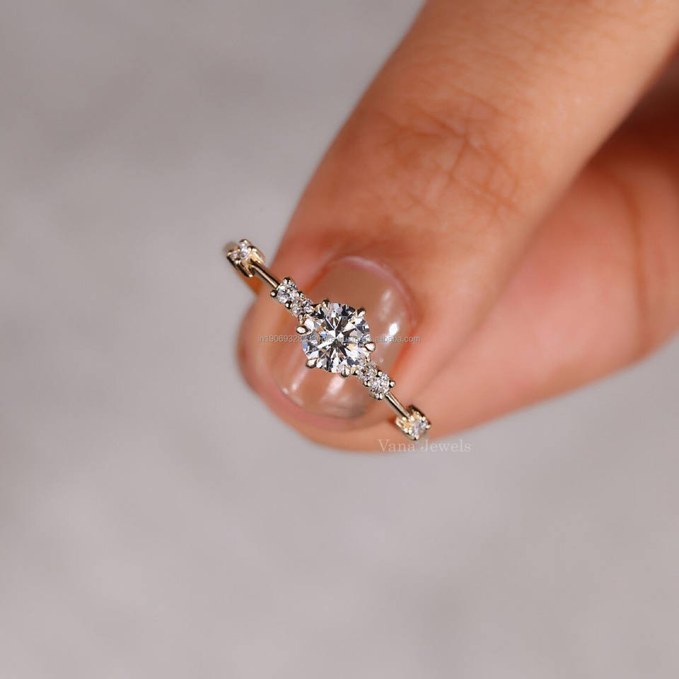 Bague de fiançailles ronde en diamant de laboratoire Unique anniversaire de mariage meilleure bague de proposition pour femme 14k matériel en or blanc massif