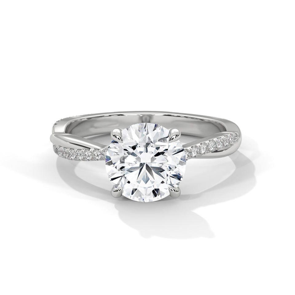 Bague de fiançailles en or jaune avec diamant de laboratoire rond et pavé torsadé – Bague de mariée solitaire en diamant pour femme