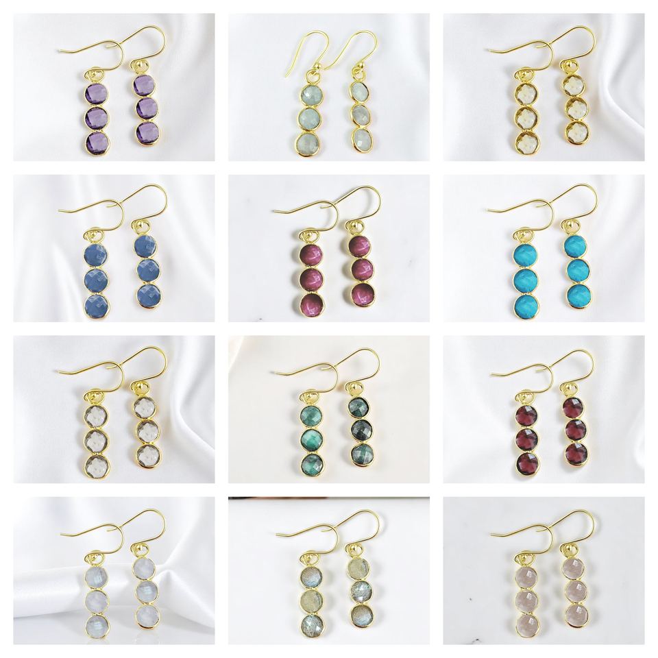 Boucles d'oreilles pendantes en pierre de labradorite ronde | Boucles d'oreilles longues en labradorite naturelle facettée, faites à la main, pour femmes