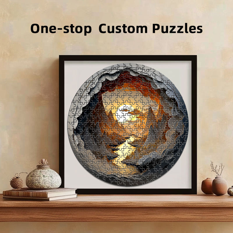 Puzzles en papier écologiques personnalisés de paysage rond pour adultes et enfants