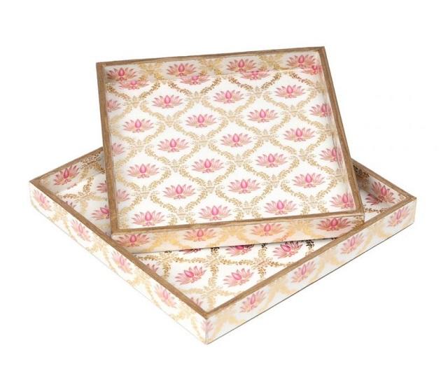 Plateau rond en laque MDF avec impression de mandala floral jaune rouge Plateau de service décoratif en bois fait à la main pour la maison et la cuisine