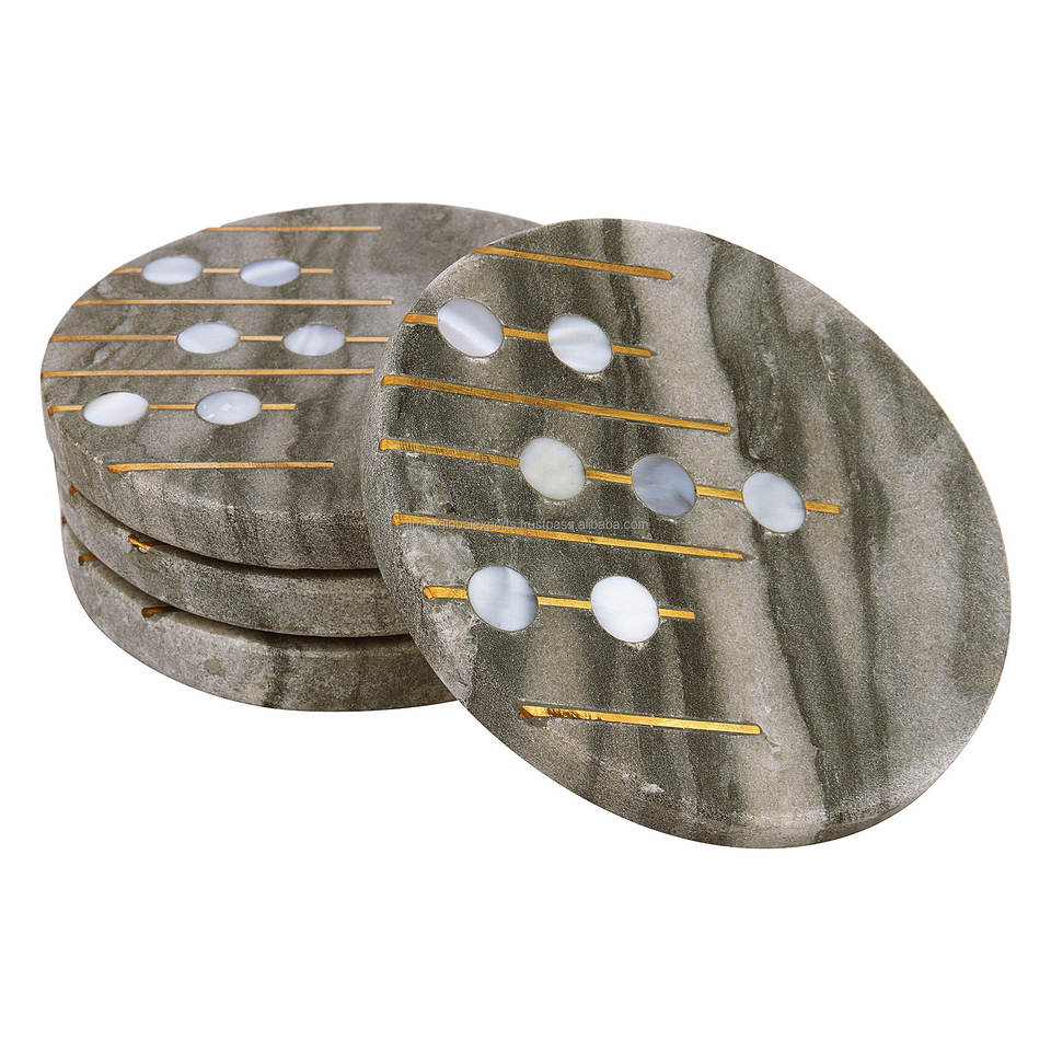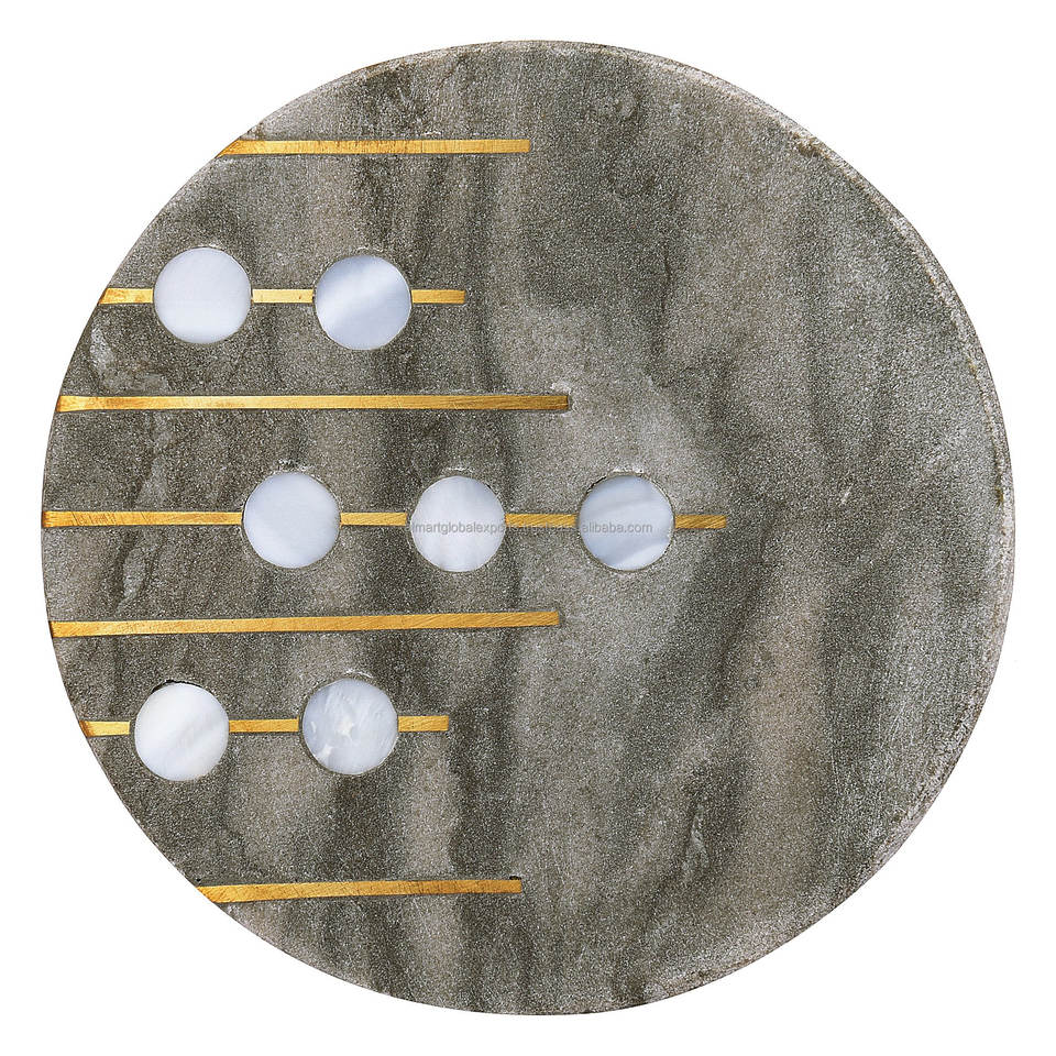Sous-verre rond en marbre avec incrustation en acier inoxydable, écologique, épaisseur 10 mm, design personnalisé pour table et accessoires de cuisine