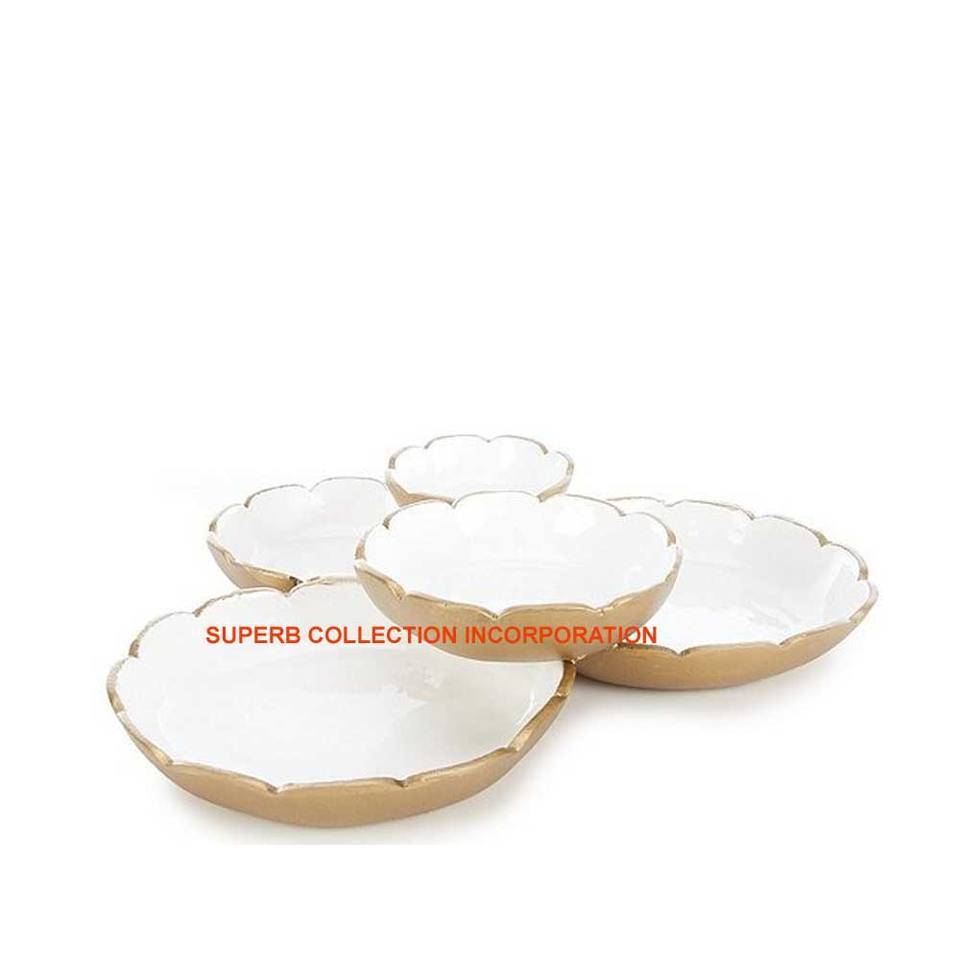 Bol de service en acier rond en métal avec bol de service en argent blanc avec finition haut de gamme