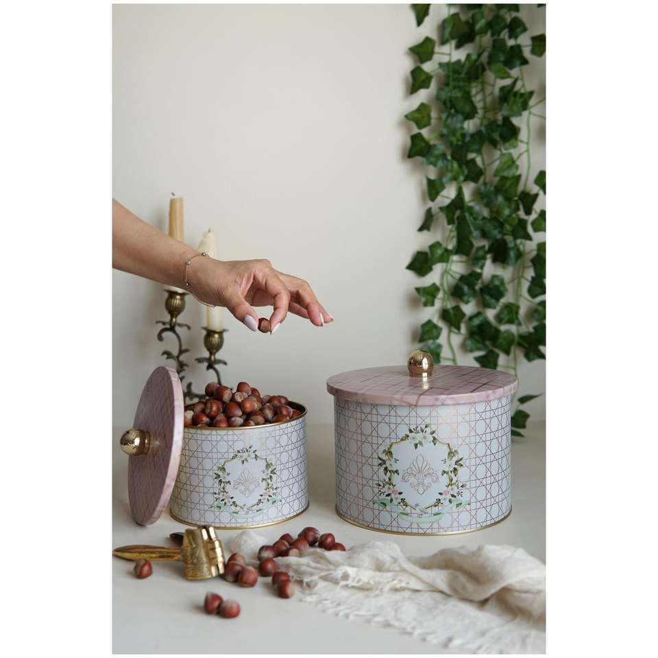 Kontensan Boîte ronde en métal étain Set Dia 175x155-Dia 140x125 Poignée à bouton (Lot de 2) Rosy Design