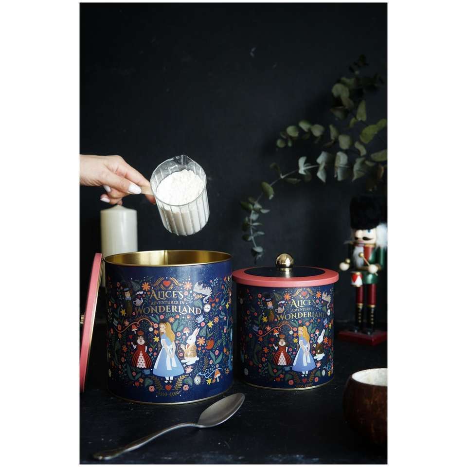 Ensemble de boîtes rondes en métal Dia 175x180 - Dia 140x150 Poignée à bouton (2 pièces) Design de texture en lin inspiré du café vintage Contes Design