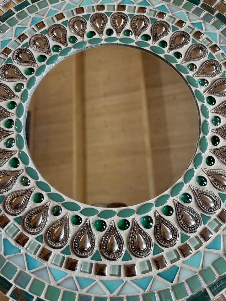Miroir mosaïque rond argent/noir/blanc/gris