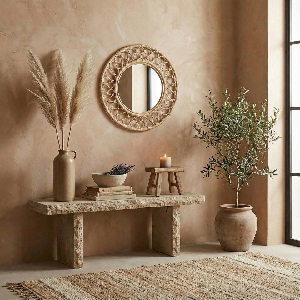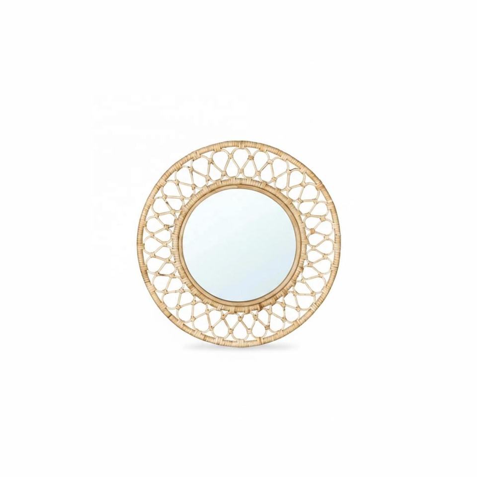 Miroir mural rond en rotin naturel avec texture tissée chaude Décoration de salon Décoration vintage