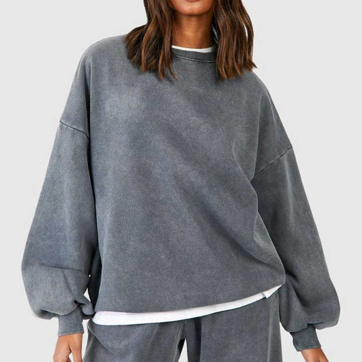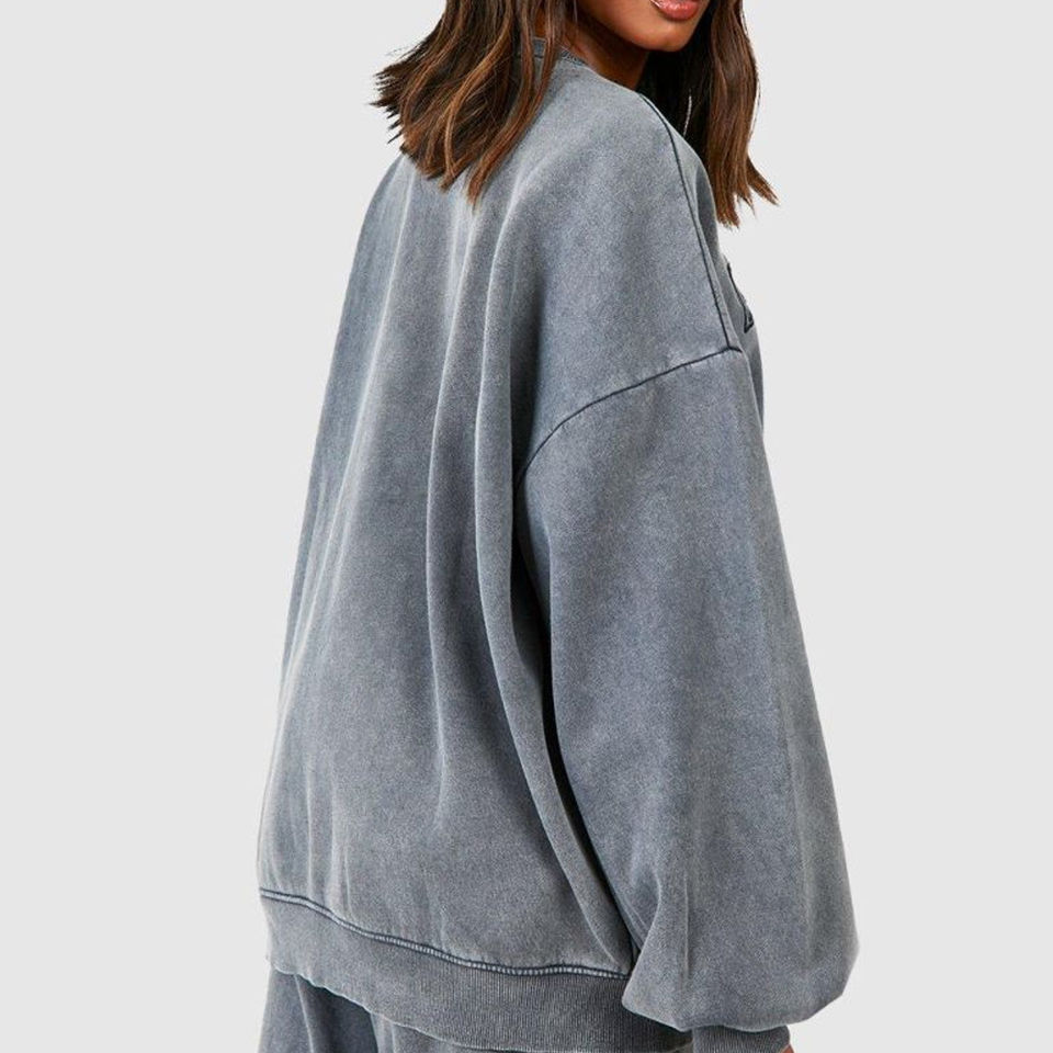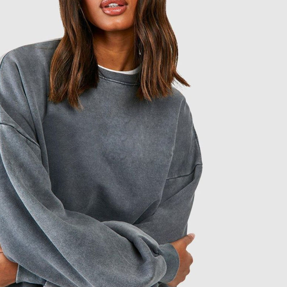 Sweat-shirt à col rond pour femme, effet délavé, haute qualité, prix bas, logo personnalisé, sweat-shirts pour femmes