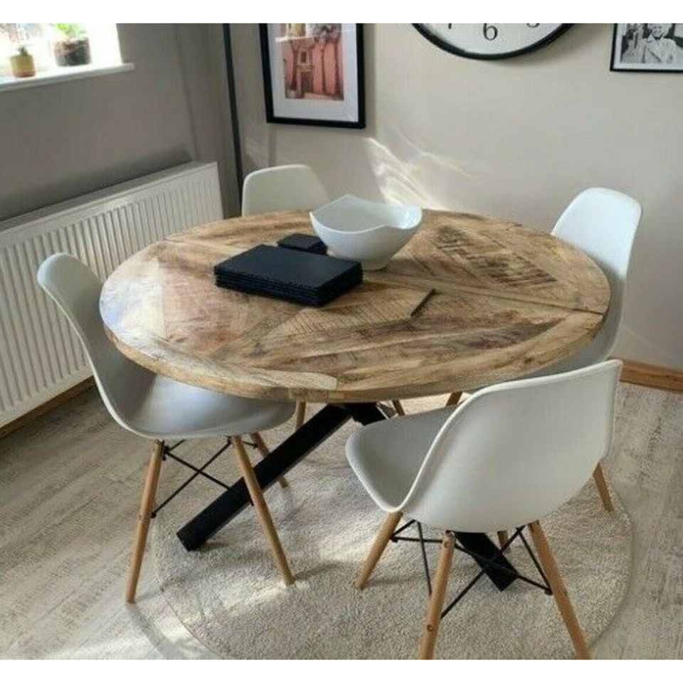 Table à manger ovale ronde en bois de manguier massif de style européen pour le salon, le restaurant, le bureau à domicile et le centre commercial.