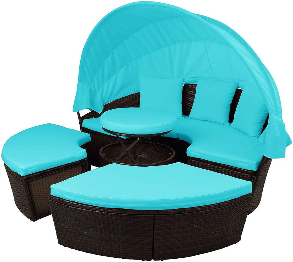 Meubles de jardin ronds en rotin, lit de jour, canapé avec auvent rétractable