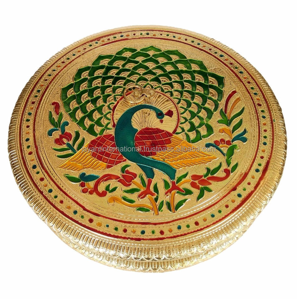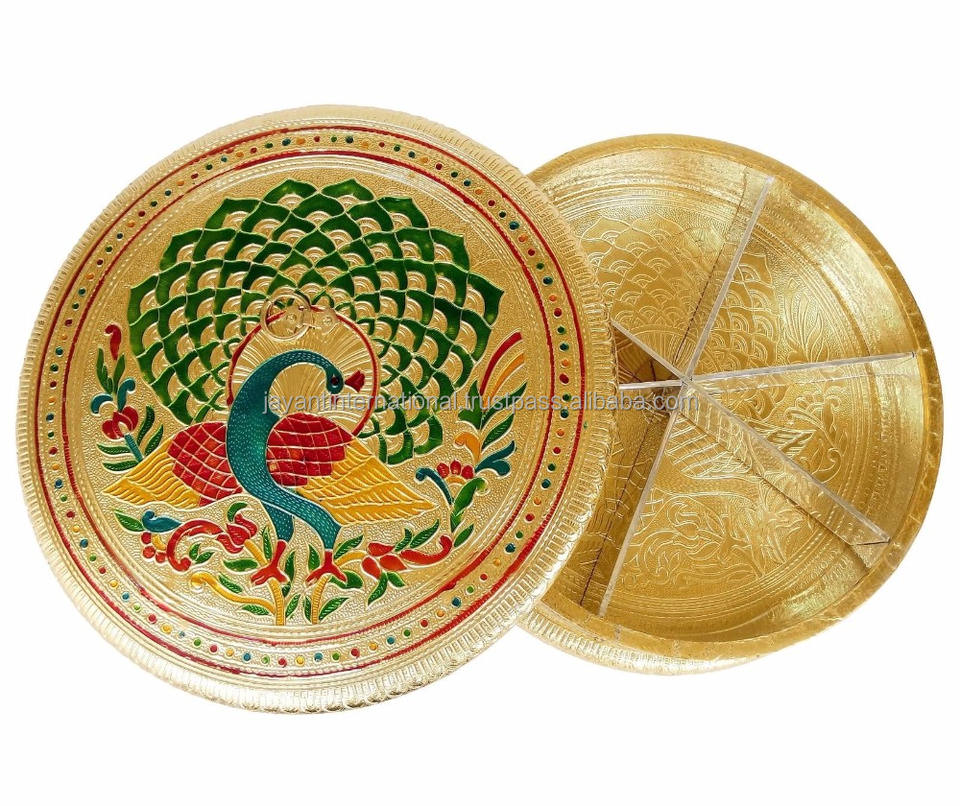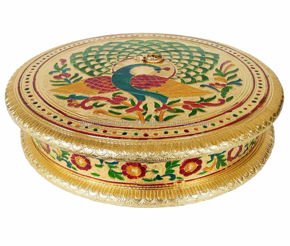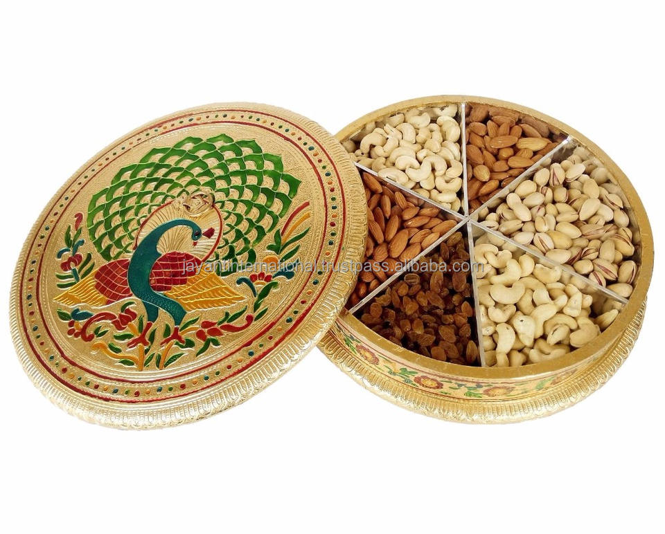 Boîte à chocolat ronde en bois, de paon, décorative, faite à la main, Meenakari, boîte de fruits secs, livraison depuis les états-unis