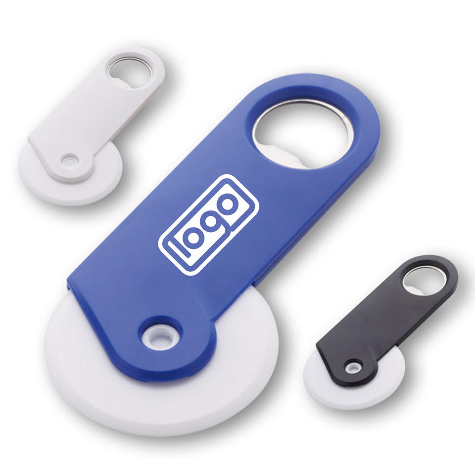 Coupe-pizza rond avec ouvre-bouteille, manche long, petit couteau à pizza multifonctionnel en plastique PP et outil de pâtisserie