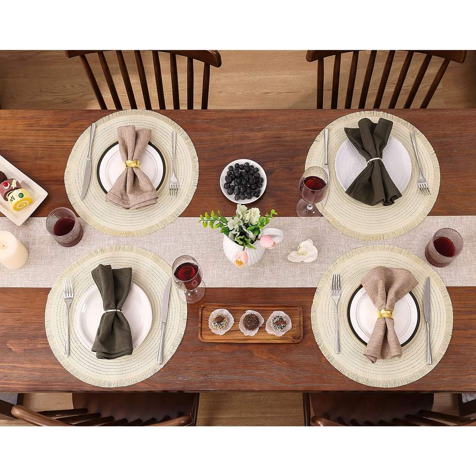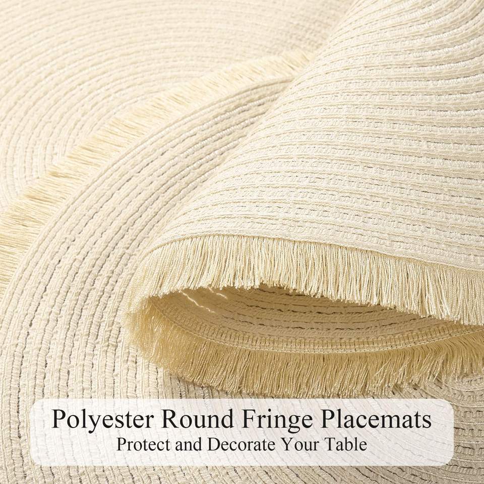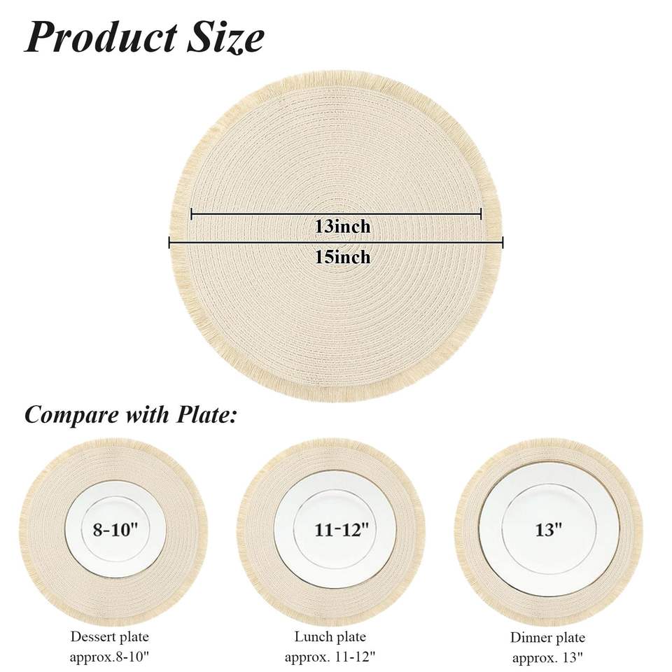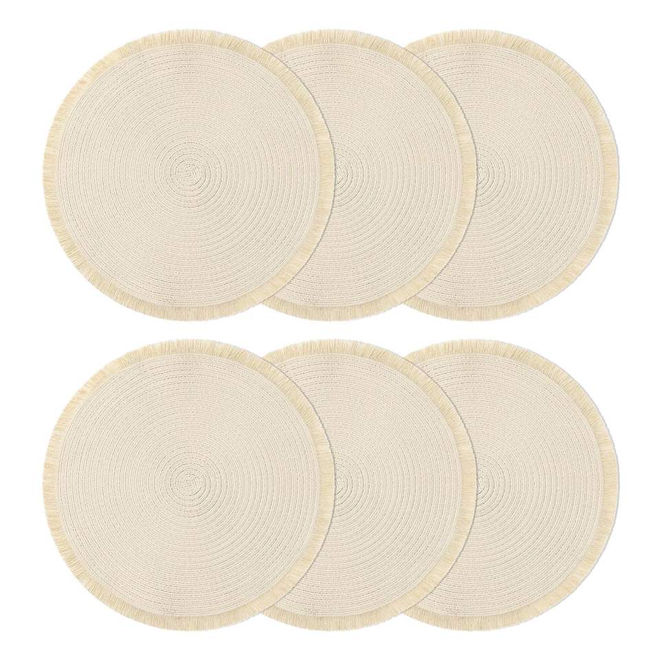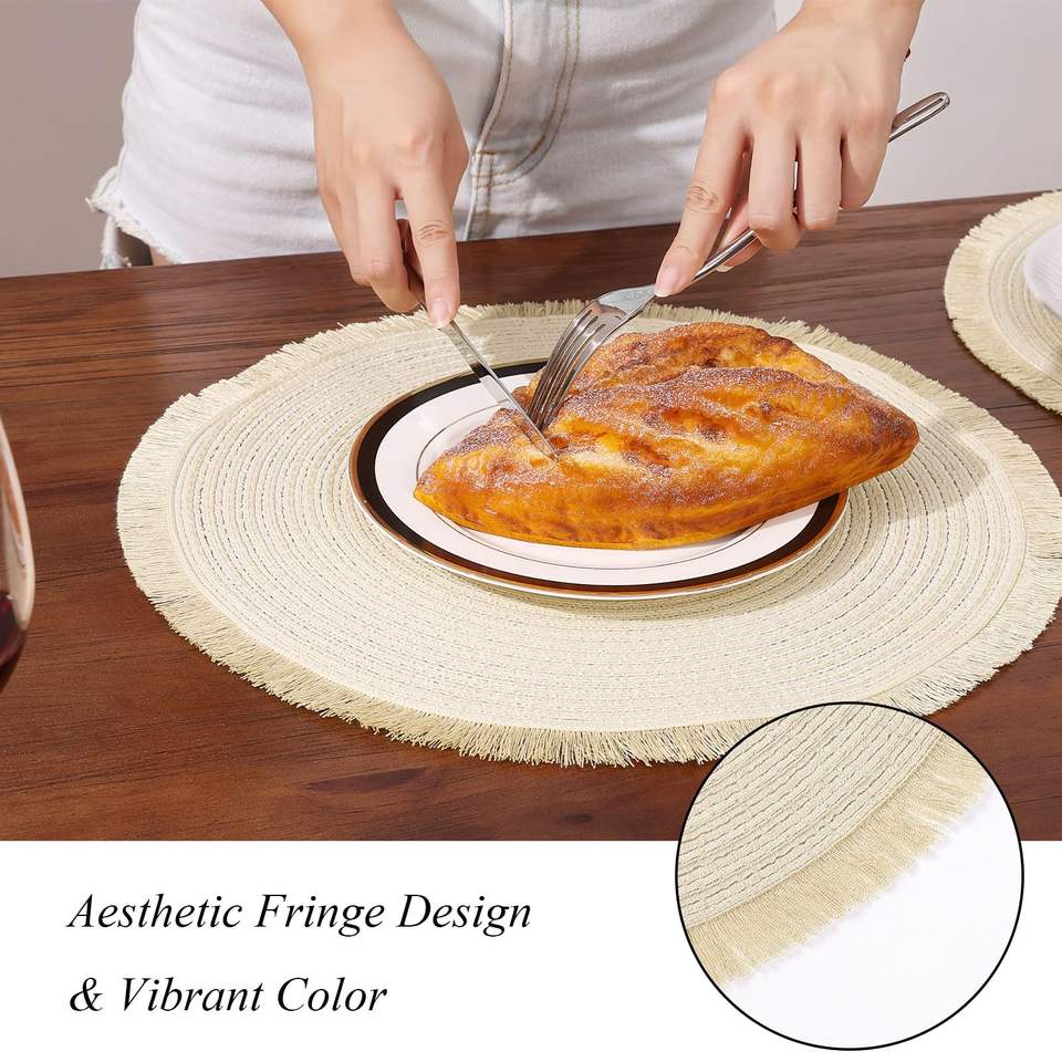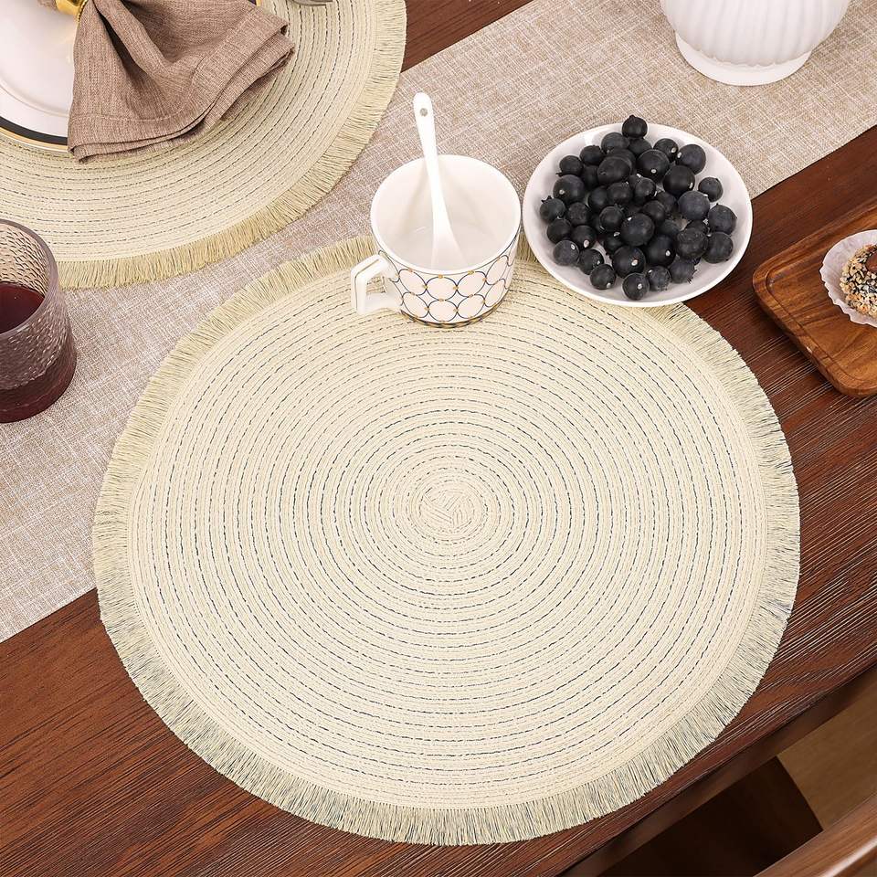 Napperons ronds Beige napperons pour Table à manger napperons tressés lavables avec frange pour la décoration de fête de mariage à la maison