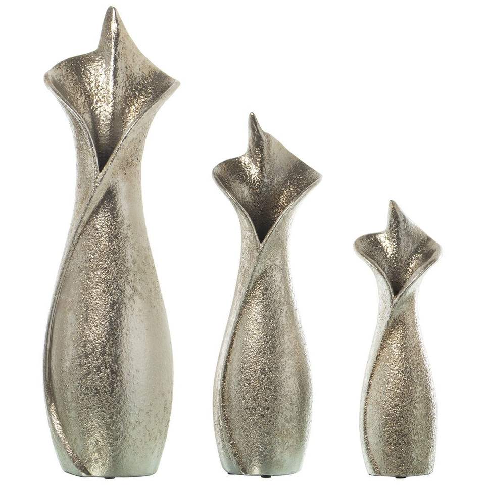 Vase à fleurs moderne en métal argenté poli, fait main, pour centre de table festif avec arrangements personnalisables