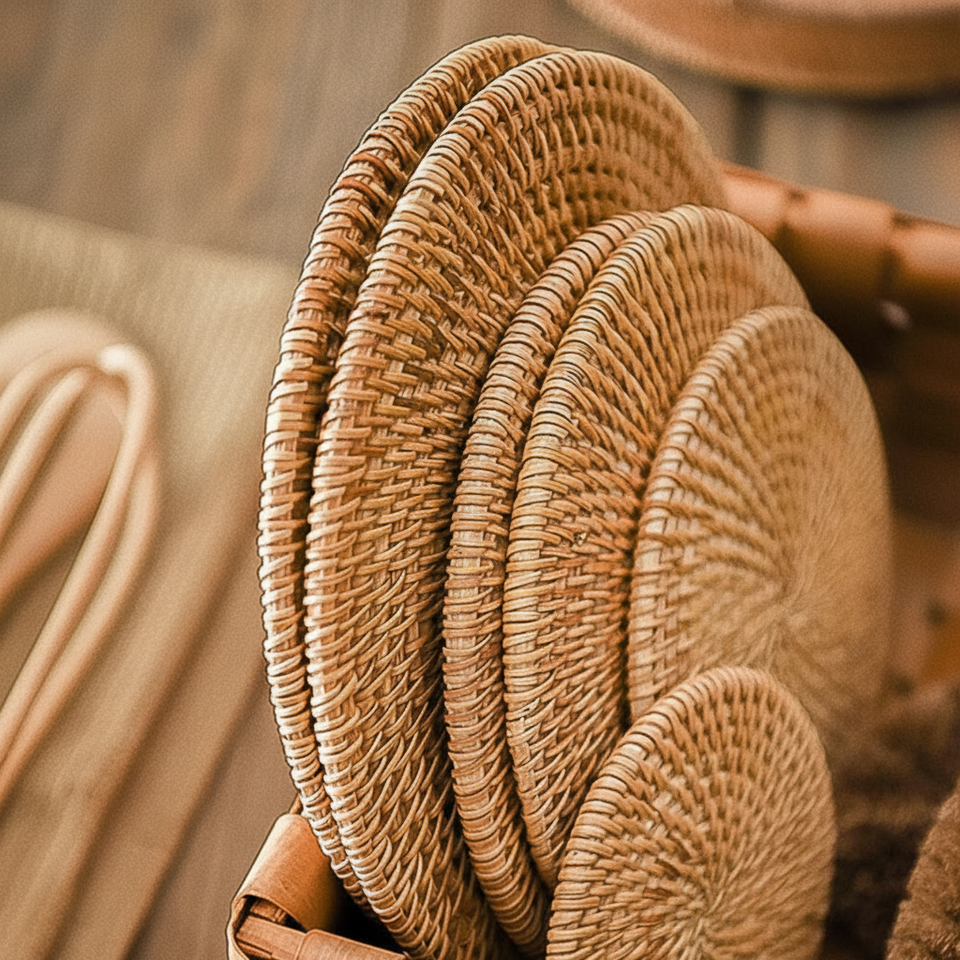 Sous-verres ronds à fleurs en rotin faits à la main avec support Assiettes écologiques en osier naturel fabriquées au Vietnam
