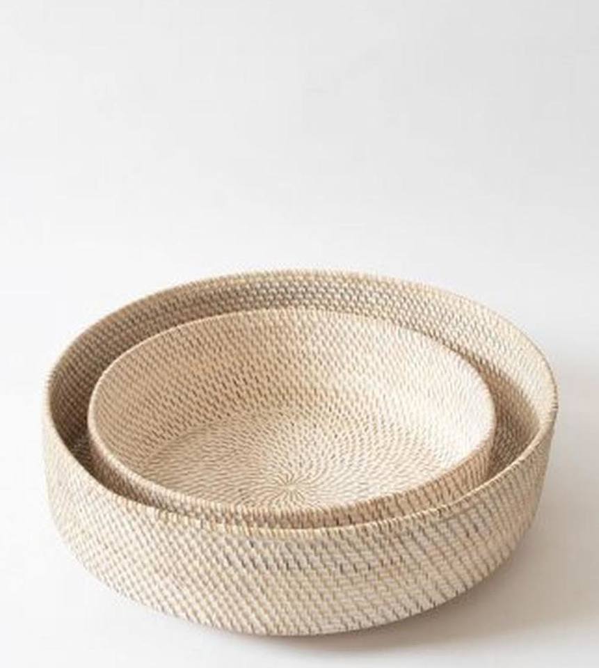 Saladier rond en rotin fini naturel Lot de 2 parfait pour les ustensiles de cuisine et la vaisselle décorative Bols utilisables