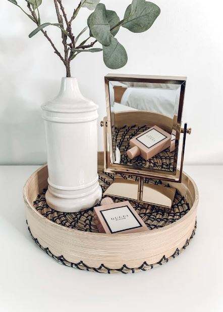 Plateau de service rond en rotin de haute qualité avec un design marron tissé Parfait pour les cadeaux du Ramadan et le service de nourriture