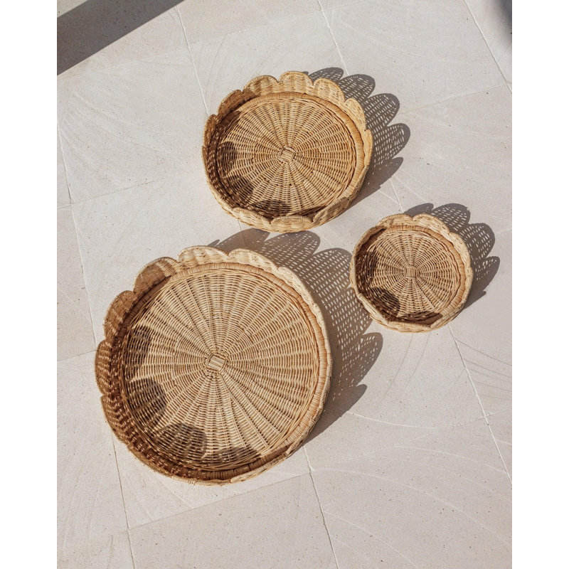 Plateau à outils rond en rotin