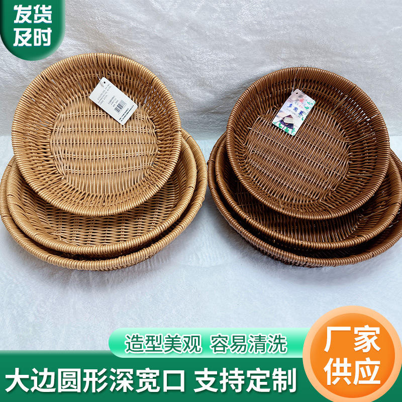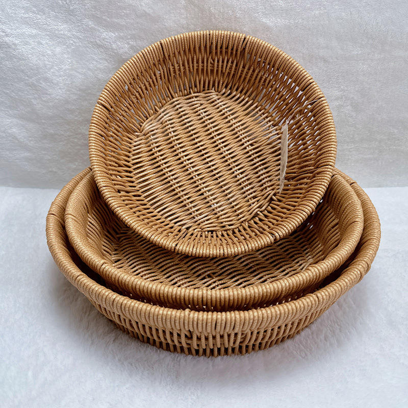 Panier rond en rotin tressé fait main, plateau à fruits, récipient de rangement, bol à collation, usage domestique
