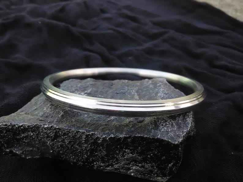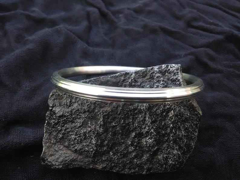Bracelets ronds striés Kada Bracelet manchette en acier inoxydable poli pour hommes