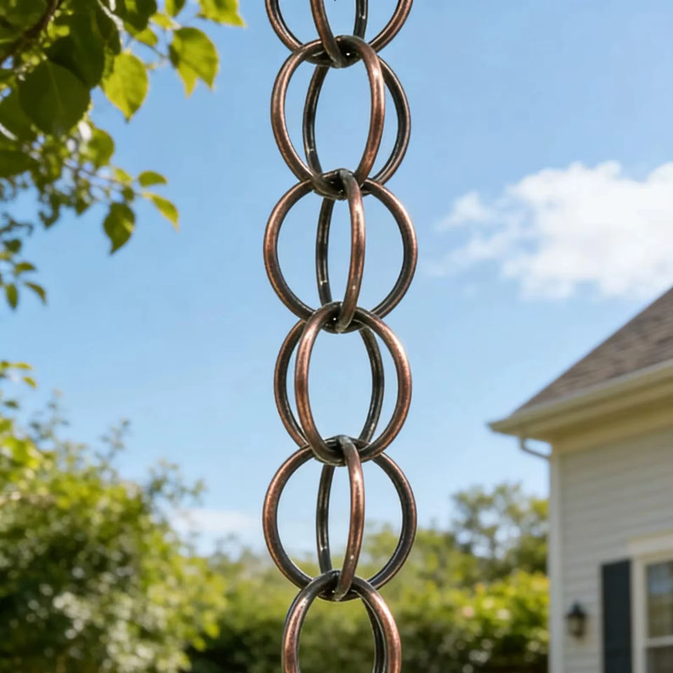 Chaînes de pluie décoratives en métal en forme d'anneaux ronds pour jardin, chaîne de drainage d'eau suspendue pour extérieur, décoration de patio et de maison, provenance Inde