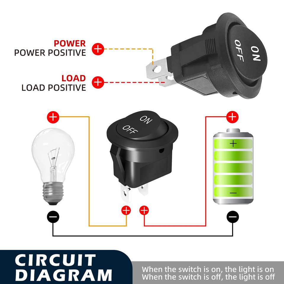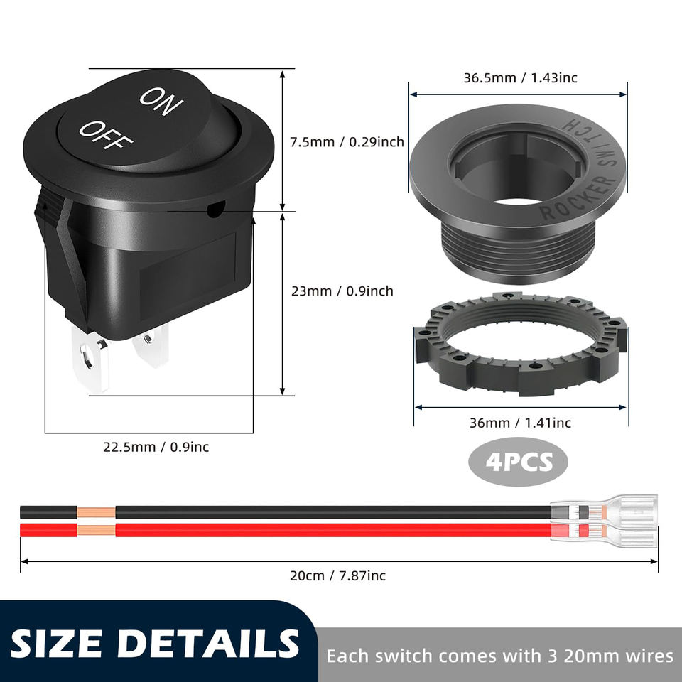 Interrupteur à bascule rond 12 V interrupteur marche/arrêt 12 volts DC cercle interrupteur à bascule 2 broches SPST 15A/250V 20A/125V AC 20MM avec fils