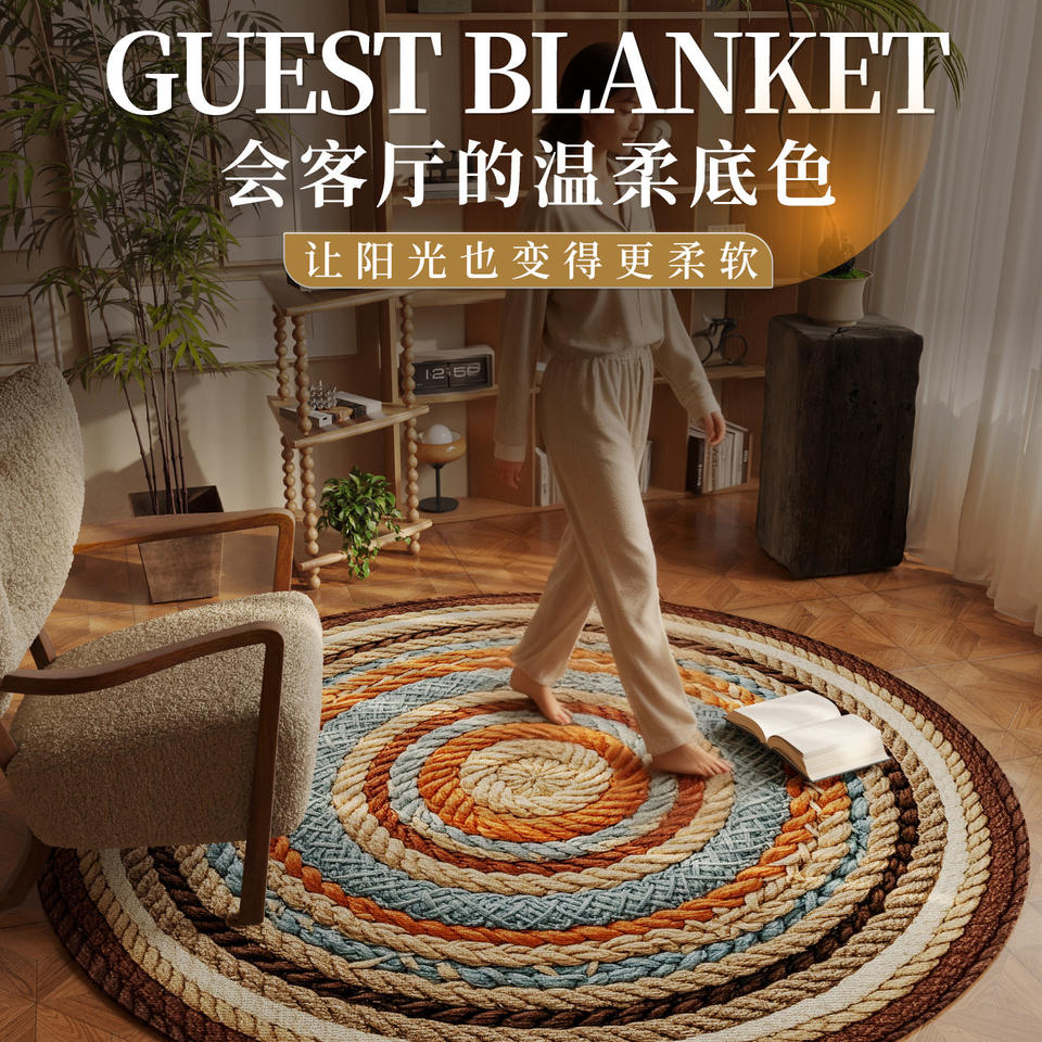 Tapis rond coloré à motif abstrait tissé en fibre de polyester, décoration d'intérieur, tapis de salon, design géométrique brun chaud