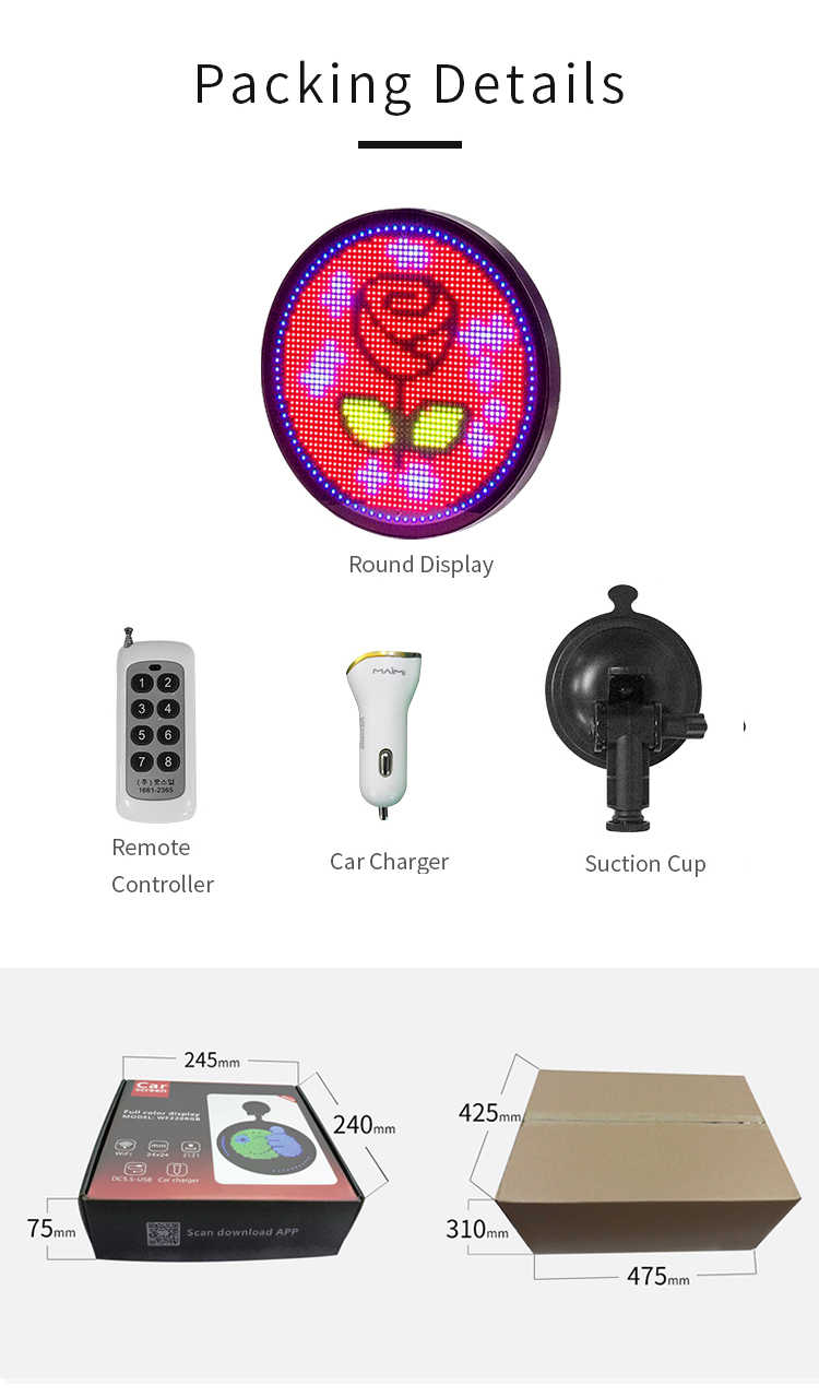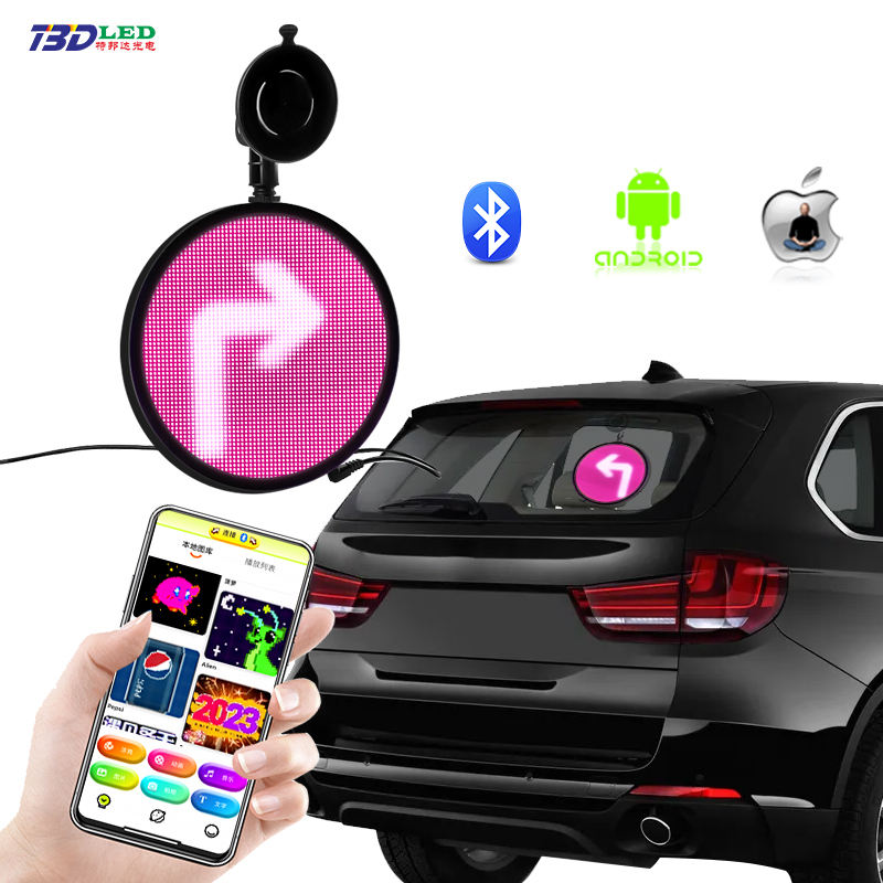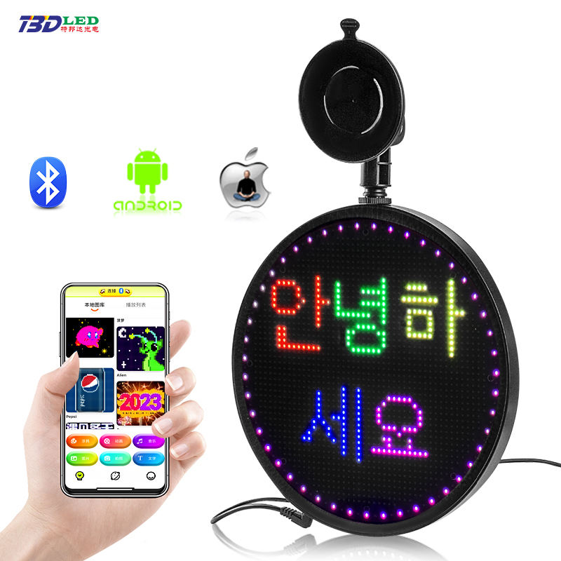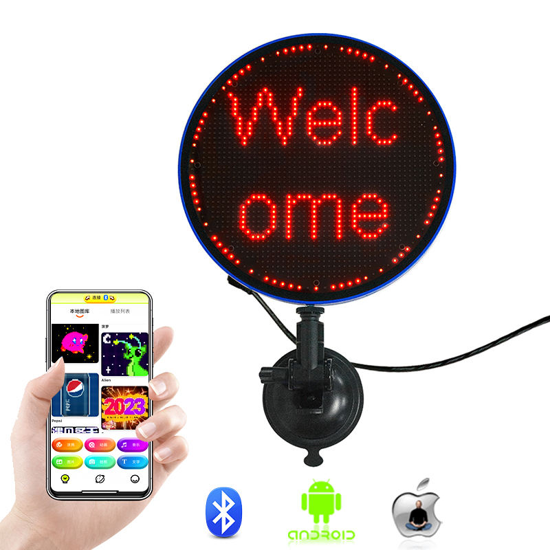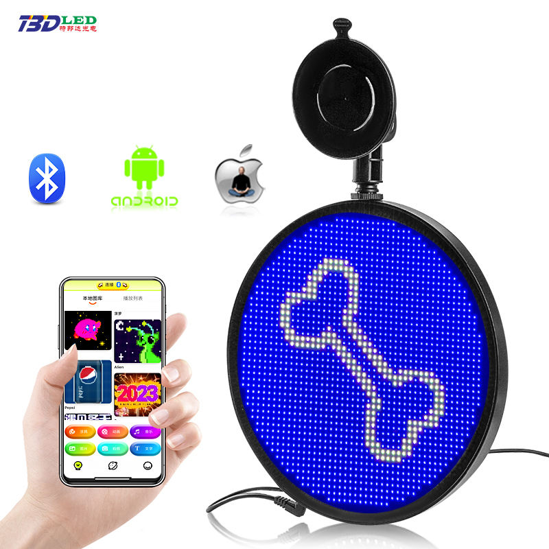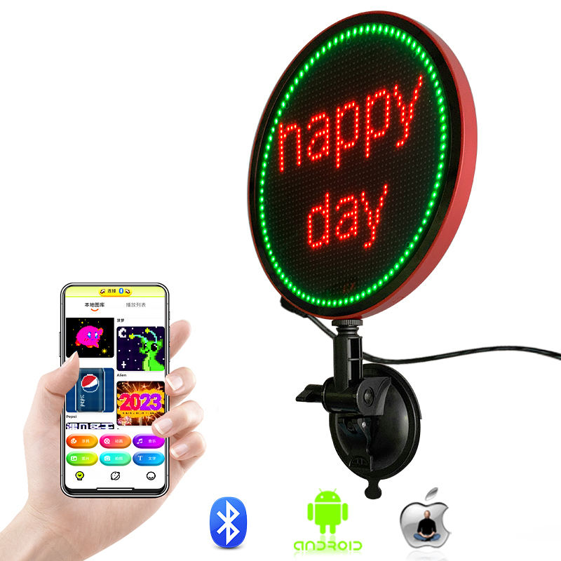 Panneau LED à défilement contrôlé par application de forme ronde avec images de texte pour les émoticônes personnalisées de voiture pour le tableau d'affichage des fenêtres de voiture de taxi