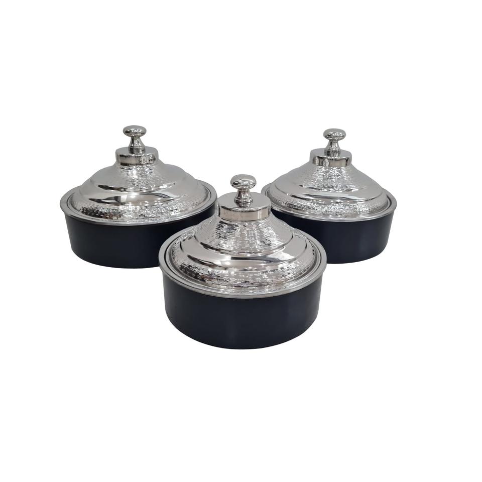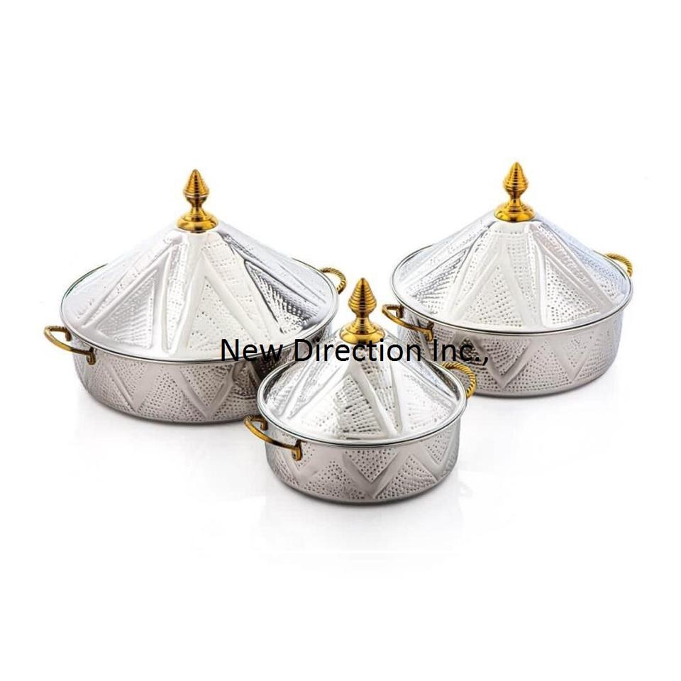 Ensemble de marmites classiques de forme ronde écologiques pour servir des aliments de 3 casseroles isolées faites à la main en acier inoxydable