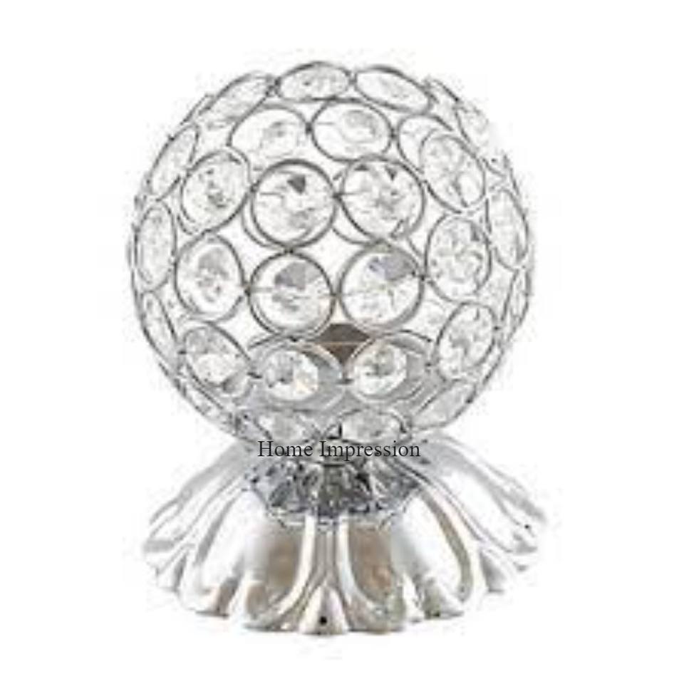 Bougeoir perlé en cristal clair de forme ronde avec base en métal poli brillant argenté fournitures de foudre festives et de fête