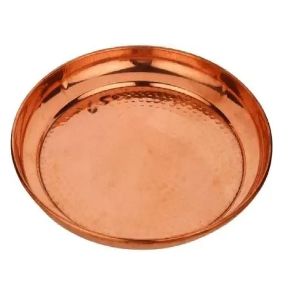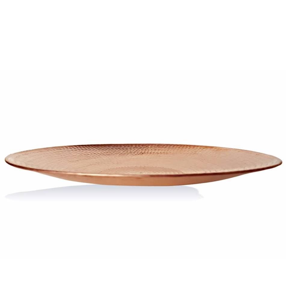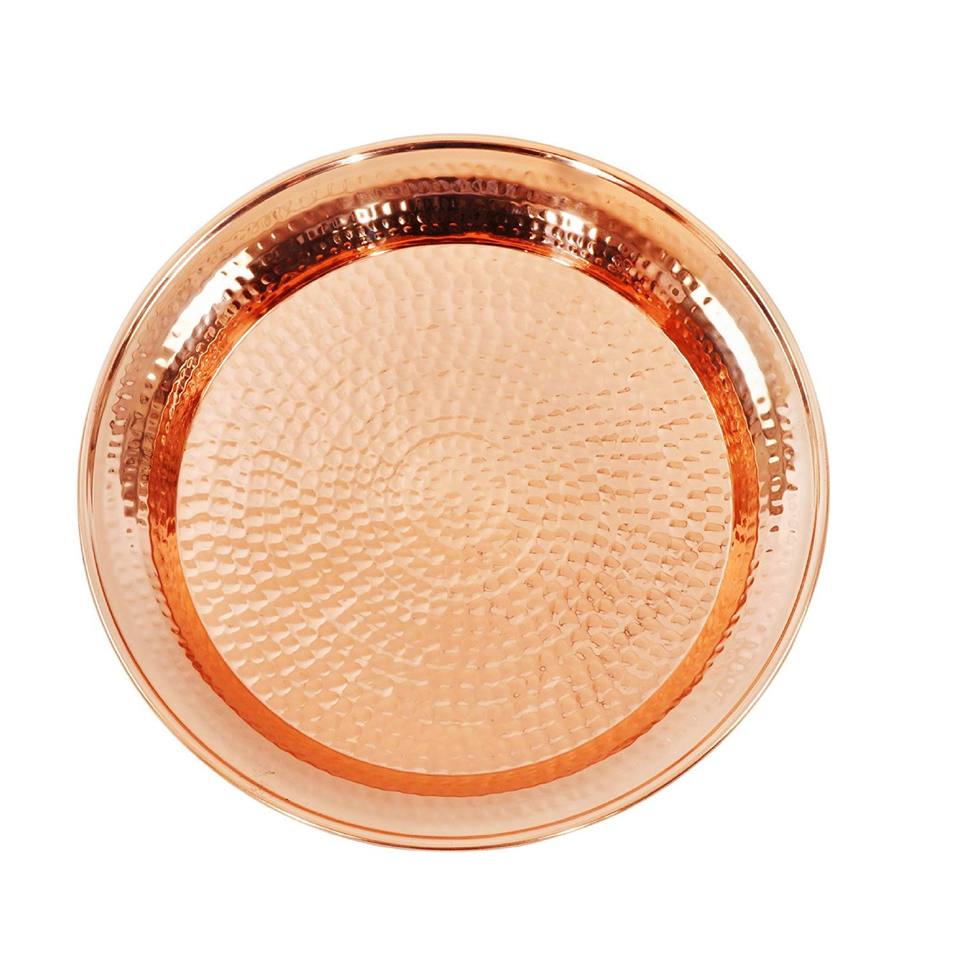 Assiette de service en cuivre martelé de forme ronde assiette de service en cuivre fabriquée à la main indienne assiette de service en cuivre pur