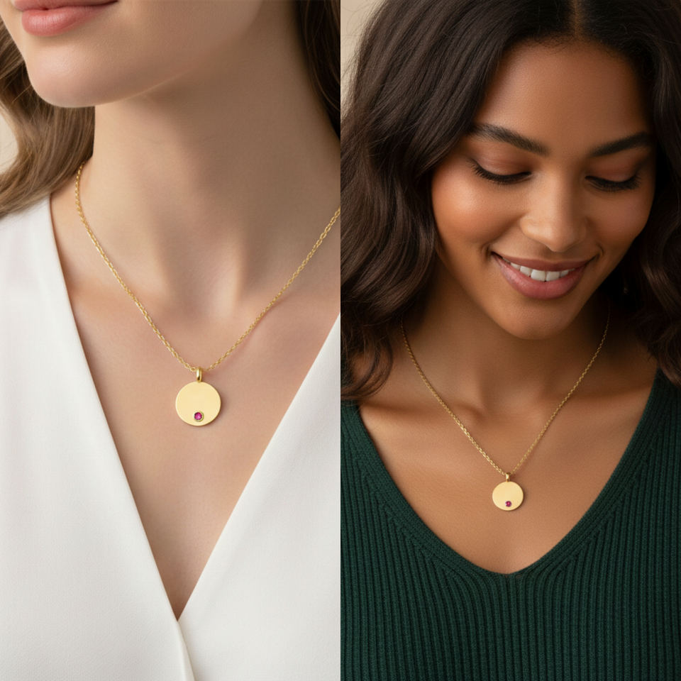 Product Name:Round Shape Custom Engraved Sterling Silver Disc Gold Plated Necklace