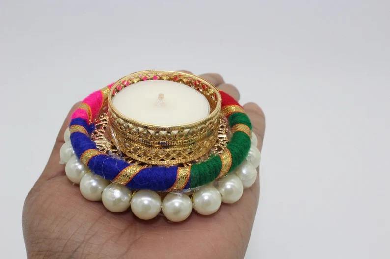 Bougeoir en métal léger en T décoratif de forme ronde pour la fête de mariage indienne et les accessoires de décoration de temple